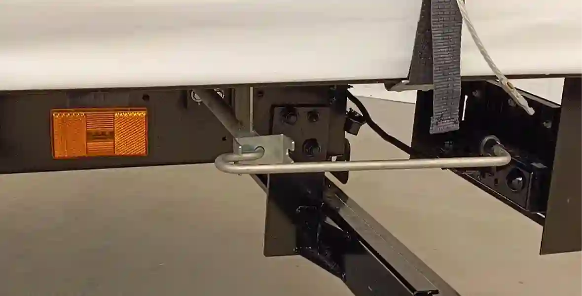Направляющие шторы алюминиевые, ролики – металлические. Быстросъемная перегородка посередине движется на отдельных роликах вперед и назад, что обеспечивает легкость погрузки с любой из сторон – как сзади, так и по бокам. Борта – алюминиевые. В передней стенке за фанерой скрыт металлический каркас, который защищает кабину водителя. Такелажные петли вмонтированы в обвязочный профиль. Это облегчает доступ к ним при любом размещении паллет и позволяет фиксировать груз, не сдвигая паллеты.