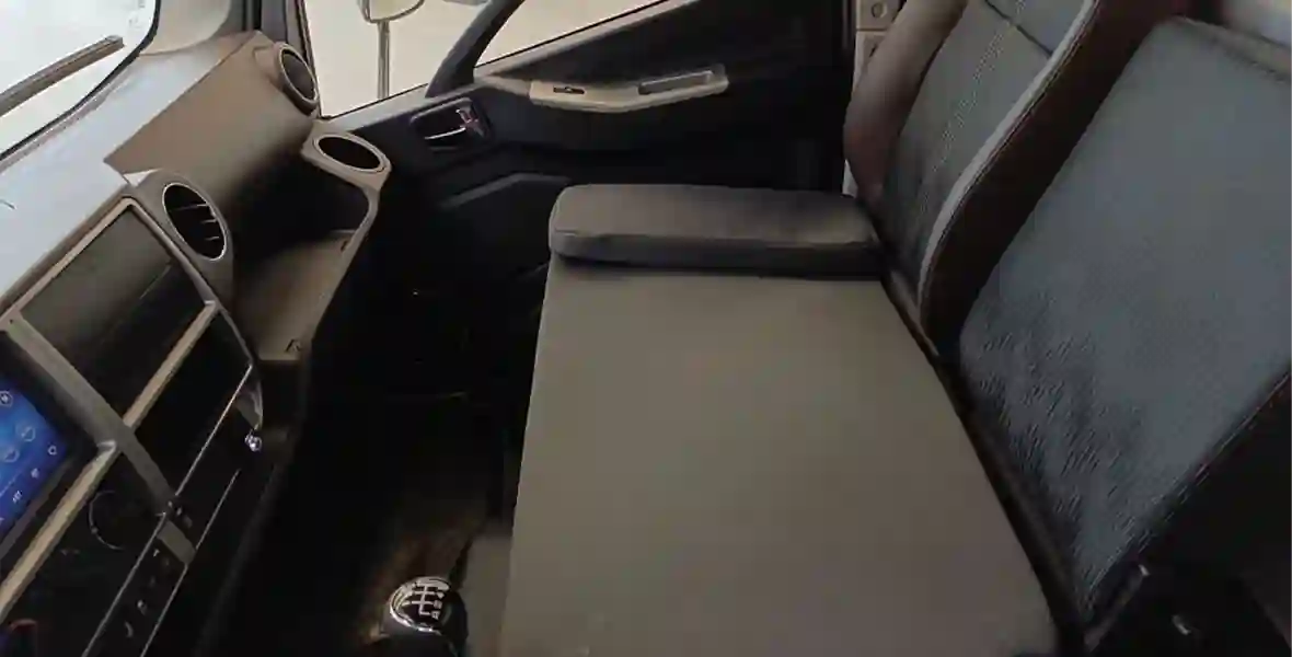 Даже совсем немного посидев в кабине FORLAND 8, сразу чувствуешь, что эргономику автомобиля и внутреннее пространство рисовали люди, хорошо знакомые со спецификой предстоящей эксплуатации. За исключением каких-то малозначительных нюансов продумано практически все. Они постарались просчитать сценарии на несколько шагов вперед и позаботились даже о матрасике, который прячется за спинками и раскладывается на сиденьях, чтобы водитель мог комфортно отдыхать. А чтобы ногам ничего не мешало, рычаг стояночного тормоза максимально смещен к задней стенке. Да, сидя в кресле, дергать за него не очень удобно, но для безмятежного сна во весь рост – самое то.